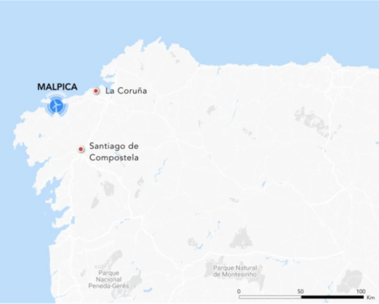Malpica is a wind farm with an installed capacity of 16.5 MW that came into operation in 1997 and was repowered in 2017